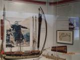 Второй этаж посвящен истории Аляски. Как это обычно бывает в здешних музеях, экспонаты расположены не в хронологическом, а в тематическом порядке. Кто куда и на чем доплыл, чем тут занимался, чего осваивал и т.д. Целая экспозиция посвящена экспедиции Джеймса Кука, по чьему проливу мы сюда доплыли. На карте представлены европейские исследователи Аляски. Красным отмечены маршруты русских мореплавателей – Семена Дежнева, Витуса Беринга, Федорова, Гвоздева, Чирикова, Левашова, синим – британцев Кука и Ванкувера, сиреневым – испанцев Переса и Маласпина, и француза Лаперуза. Сразу мысленно «замурлыкалась» песенка Яна Френкеля про Сахалин: «где я бросаю камешки с крутого бережка далекого пролива Лаперу-уза»...