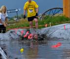Мы запарковались на VIP парковке для организаторов и прессы, рядом с финишем и всеми аттракционами с грязью. Старт был в паре километров от финиша, а трасса пролегала зигзагом, то с горки, то на горку. Народ запустили на разогревку пробежаться, а потом начались водно-грязевые процедуры, вся трасса состояла из 5 км.