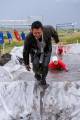 Стартовали группами каждые полчаса по сто человек. Первый участник конкретно оторвался от своей группы, затем три других бегуна, а потом народ повалил, реально повалил массово. Как сказали организаторы, приняли участие более 1000 человек и не все желающие смогли участвовать. Соревнования расчитаны на один день, желающих хватало на два дня. Как обычно, были спортсмены в различных костюмах, понравились два бегуна в деловых мужских костюмах, белых рубашках и галстуках. После финиша пожарные устроили помывку спортсменов из брансбойтов холодными и сильными струями воды.
