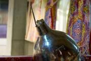 Народный умелец демонстрировал картины из цветного песка в бутылках, яркий шелковый шатер приглашал насладиться прохладой перед входом в зал.
