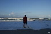 Был и заброшенный район вдоль побережья, типа нашего North End, полуразвалившиеся дома, пустые коммерческие здания. Проехали парк Незнайки. По телефону зарезервировали место в гостинице на берегу океана, что на Западном пляже Кока. Океан штормил, на берегу развивались красные флажки, что не останавливало людей прогуливаться по песку, а отчаянные доскисты ловили волну и в бурю. Прикольно было видеть велосипедистов, едущих по границе воды и песка вдоль волны. Mногие гостиницы на побережье не владеют пляжем, для удобства клиентов строится огромный балкон с бассейном, джакузи, лежаками, зонтиками, столиками, барными стойками с алкоголем и легкой закуской, (в отличии от Кубы,не входящими в стоимость гостиницы) и лестницей к пляжу. Так, что можно лежать под солнышком на мягком лежаке и зреть океанскую даль. Вода, к сожалению, в бассейне была не из океана, как бывает на Кубе и Гавайях.