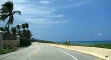 Едем дальше, названия городков меняются, но границ между ними не видно. Заехали в Голливуд, побродили по известному пляжу, испробовали вкуснейшего кубинского кофе с удивительным пирожным под музыку "Жуков". Курортный городок, с множеством кафешек и ресторанчиков, столики которых расположены и на улице под навесом, все в цветах. Улицы украшены живыми зелеными фигурками из деревьев, фонтанами, у дверей небольших магазинчиков стоят фигуры индейцев, издалека не отличимые от живых людей. Далее следовал район вилл, где весь пляж в частной собственности. Слева замки, утопающие в зелени, справа океан с множеством частных входов на пляж.