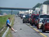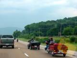 На утро мы поздненько выбрались на дорогу, решив заехать в местные достопримечательности, расположенные недалеко от трассы. Им оказался национальный парк, где полюбовались каньонами необыкновенной красоты, каньон бело-красной расцветки - это оттуда. Затем попали в пробку, отстояв почти час, такое испытали в первый раз, дорога не справлялась с количеством машин. Позже мы видели подобные пробки, тянущиеся на несколько десятков км на противоположной стороне трассы. На границе штатов Грузии, Алабама и Теннеси посетили водопад, проехались по рельсам по горам. И в путь домой. В Грузии уже началась непогода, причем с востока надвигался ливень с градом, а запада ураган с торнадо и обещали встретиться. Непогода нас преследовала, практически до дома, но мы успевали в последний момент ускользнуть, словно кто-то оберегал нас. Последнюю ночевку сделали в Иллинойсе, штате Линкольна. Нас встретили грандиозным салютом (Memorial Day in US).