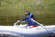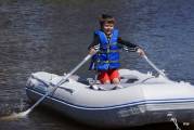 Наших двойняшек заняли на весь день, им предложили самостоятельно покататься на резиновой лодочке. Сначала они даже не поверили своему счастью, переспросили, радости не было конца. Надели на них жилеты, лодку привязали на длинный канат к причалу и пустили в свободное плаванье на веслах. Замечательная идея для обучения гребли. Малышня села в лодку, взялась за весла и дружно запела: Row, row, row your boat...