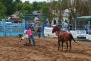 После парада народ поспешил уже в парковую зону, где и проходила основная часть Фестиваля. Расписание мероприятий большое, поэтому всё охватить невозможно, и мы поспешили смотреть High School Rodeo Association Rodeo. На одном из рингов проходил конкурс верховой езды, посмотрев немного, мы перешли на другой ринг, откуда слышались эмоциональные комментарии ведущего. Там и было родео, участники - ученики школ, но не смотря на юный возраст, держались они довольно уверенно и умело закидывали лассо.