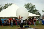 На небольшом поле показывали свое шоу клоуны и шоу мэны. Так, мы были зрителями шоу "Резиновый человек", где мужчина надул огромный шар и потом залез не только сам туда, но также предложил всем желающим-детям оказаться внутри надутого шарика. Детвора в восторге от зрелища и участия, а взрослые смеялись над шутками.