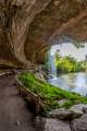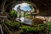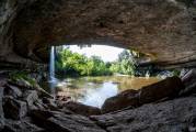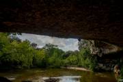Когда-то очень давно, несколько тысяч лет назад, известковый свод пещеры частично обвалился, по нему текла река Педерналес (Pedernales river) приток реки Колорадо (Colorado), она и заполнила пещеру, образовав озеро с каменным навесом. Река продолжает течь до сих пор, пополняя озеро через многочисленные водопады. Есть и подземная река, питающая озеро и тоже впадает в реку Колорадо.