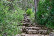 По дороге к гроту я мечтала поплавать в небывалой красоте, но к сожалению, уровень кишечной палочки зашкаливал и в воду заходить не разрешали. К озеру ведут многоярусные ступеньки, глубина грота 15 метров,  примерно, равна 7 этажному зданию. Местечко находится под охраной государства. Въезд на территорию парка ограничен количеством машин и платный, 10 долларов с машины. Живая очередь, машина выехала, машина из очереди въезжает. С собаками въезд запрещен. Парк расположен недалеко от Остина, всего около 40 км на запад.