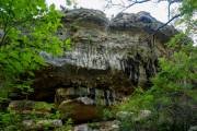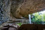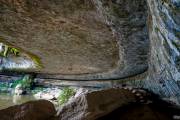 Под каменным сводом было слегка страшновато, если когда-то часть верхней пещеры обвалилась, почему бы ей не обвалиться еще раз. Удивляет форма свода, уж слишком она правильна, огромных размеров каменное плато представляет навес над озером, верится с трудом, как бы по умолчанию, сказано, что  сделано природой, значит, так и есть. На самом деле сомнения возникают, как матушка-природа могла так ровно обвалить купол пещеры?