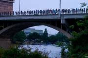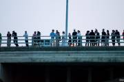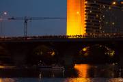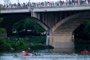 которые не обладают сетью филиалов, работают в единственном лице и предлагают только свои фирменные блюда. В одном из них мы с удовольствием и отужинали. Вещи и машина в гостинице в одном квартале от Капитолия. Он построен из местного, розового мрамора и выше вашингтонского на пару метров. Я была уверена, что сможем войти в ограду и в само здание, но не тут-то было, это вам не Виннипег. Экскурсии есть и даже бесплатные, но необходимо заранее обговаривать дату посещения. Капитолий стоит почти на берегу реки Колорадо, мост через которую служит жильем для колонии летучих мышей. Более 30 лет назад мыши заселили мост. Первая реакция жителей - уничтожить, была опротестована и обьяснена активистами и учеными города. И теперь ежедневный вечерний вылет мышей из-под моста после заката солнца собирает тысячи зрителей. Конечно, мы тоже хотели видеть уникальное, редкое явление - колония дикий мышей в центре большого города. Люди стояли на мосту, сидели на берегах по обе стороны реки, ждали на самой воде в различных плывучих средствах.