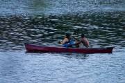 Солнце село. Комаров нет вообще. Стали вылетать одиночные мыши, одна, несколько, побольше, я даже сразу не поняла, что это мыши, очень похожи на ласточек. И почти над берегом напротив показалась длинная-длинная стая, больше похожая на пчелиную.