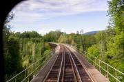 Путь до Тихого океана, с задержкой на запасных путях для пропуска грузового поезда, составил больше 15 часов. Проводник накормил вечером за счет заведения, принес извинения, заказал всем такси. В последний день пути красот меньше не становилось, случаются минуты перенасыщения, которые быстро улетучиваются при очередной супер картинке за окном, а там реально есть, что смотреть. Прошли череду туннелей, огромные мосты, просто какой-то вестерн, а не моя жизнь. Наш машинист колоритный персонаж с усами, всегда улыбающийся, в ковбойской одежде, фетровой шляпе и шейном платке. Поезд ждет товарняк на запаске, смотрим, наш герой ягоды собирает, очень необычное чувство возникает при виде машиниста у обочины.
