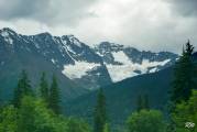 Самая высокая вершина видна из окна, гора знаменита окутанными облаками, мало кто видел пик горы, там всегда облачно. Наш проводник и земляк из Виннипега оказался альпинистом, мечтает о новых воссхождениях на пенсии, из его рассказа - забрался на пик горы Робсон. 21 км надо пройти по скользским, отвесным скалам, чтобы увидеть мир с высоты 3954 метров, далеко не всем под силу.