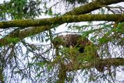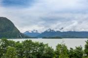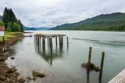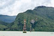 Следом за горой проезжаем достопримечательный водопад Пирамида (Pyramid Falls), затем огибая горы едем на северо-запад вдоль могучей реки Фрейзер. Время летит быстро, одна потрясающе-красивая картина сменяется другой. Вроде как находишься в художественной галерее, но картины меняются на скорости, нельзя рассмотреть до мелких деталей, правда, даже грибы, ягоды видны из окна, растут у шпал. На отмели горной реки видели бурую медведицу с двумя малышами. Чудо-картинка стоит перед глазами до сих пор. Перекладина моста скрыла часть снимка и, именно, там были медвежата с мамой. Люди еще пару раз видели, скапливались у окон, фотографировали. На снимках можно увидеть двух лосей на противоположном берегу реки.