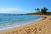 KapaluaBeach (Мауи). Среди большого количества великолепных пляжей на острове Мауи, больше всех выделяется KapaluaBeach. Этот пляж может служить предметом мечтаний: золотой полумесяц песка ограничен с обеих сторон лавовыми мысами, песчаное дно плавно уходит в океан, вода безукоризненно прозрачна. Небольшой пляж защищен от сильных волн и течений двумя вытянутыми лавовыми мысами, идеально подходит для пловцов всех возрастов, включая детей. Возле лавовых мысов многие плавают с маской и трубкой, можно увидеть морских черепах.