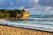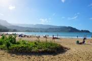 HaenaBeach (Кауаи). Этот изогнутый пляж на северном побережье острова служил местом съемок многих голливудских фильмов. Зернистый золотой песок и прозрачные бирюзовые воды обусловили любовь Голливуда к HaenaBeach. Летние месяцы тихо катят спокойные для купания и плавания с маской и трубкой волны; зима радует своими могучими волнами серферов. Рядом с пляжем расположена Maniniholodrycave - огромная пещера, тянущаяся на несколько сотен метров в глубину скалы.