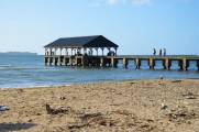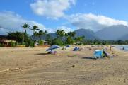 Пляж находится в красивой природной бухте, рядом городком Ханалеи. Там же находится исторический пирс Ханалеи, уходящий далеко в море.