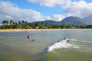 Кстати, если на пляже высокие волны, то можно просто погулять по нему – ведь окружающая природа безумно красивая. Я всем своим друзьям и знакомым говорю, что лететь на Гавайи только для пляжного отдыха не стоит – Карибы гораздо ближе и дешевле, да и волны бывают там гораздо реже, чем на Гавайях. Но вот такой красоты там нет (в круизах и просто на курортах мы бывали на многих островах Восточных, Южных и Западных Карибов, по настоящему красивые места попадались на вулканической Санта-Луше, Мартинике, Барбадосе и Антигуа, в других местах, несмотря на шикарные пляжи, особой красоты нет – по крайней мере такой, как на Гавайях).