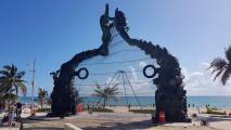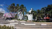 Добрели до набережной с известной аркой "Портал Майя 2012" и пристанью, откуда отправляются паромы на Косумель. Невдалеке стоит белокаменная церквушка, пользующаяся популярностью у женихов и невест, одно венчание сменяется другим, вот где простор для фотографов. Около арки вечером устраиваются представления с этническим уклоном в историю народов Майя.