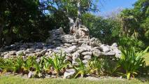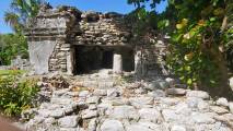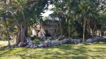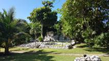 Было интересно и очень жарко. Развернулись в сторону отеля, думая по пути заглянуть на руины. Они расположены в "закрытой зоне" Плайя-дель-Кармен, но вход для туристов открыт и даже бесплатен, наверное единственное место в Мексике. Среди шикарных вилл археологические руины Xaman Ha, по которым ползают игуаны. Затерявшаяся цивилизация Майи в современных особняках с бассейнами. Специально, скорее всего, туда ехать не надо, заброшенные полуразвалившиеся строения, атмосфера древности присутствует. Пешая прогулка по тенистым пустынным улочкам ухоженного района ближе к вечеру будет приятной. Руины находятся примерно в 10 минутах от пристани. В нашем резорте тоже были следы Майи, в углублении поверхности (типа колодца с диаметров метров в десять) каменная стена с огромными масками, высотой более метра.