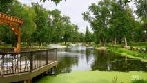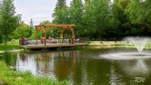 Над прудом парка построена вместительная беседка с видом на водопад. На въезде возвышается самолет, чуть поодаль мельница. Очень уютное пространство. Зимой в парке освещается лыжня ночью, запросто можно кататься в любое время суток, как и на коньках по замерзшему пруду.