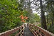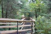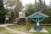 Придорожные зоны отдыха Квебека кардинально отличаются от зон отдыха в других провинциях. Сооружен домик на сваях для мусора, по типу детского игрового. Чтобы выкинуть мусор надо подняться по лестнице, а забирает мусор грузовик, подъезжая под домик и открыв дверцу в полу домика. Есть и столы под навесом, и туалеты с водой для автотуристов, что не перестаёт удивлять. Глушь, далеко от поселений и цивилизация. Обратили внимание на шум воды, нашли деревянный настил - мостики, ведущие к нескольким водопадам.