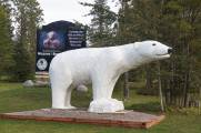 Следующее дорожное удивление - статуя полярного медведя Чимо при въезде в городок Кокрейн. Оказывается здесь есть почти "дача" (Центр по сохранению белого медведя) в основном для торонтовских жителей зоопарка и только если ты белый медведь. В центре можно поплавать в одном бассейне с белым медведем, которого охраняет толстое небьющееся стекло - перегородка. То ли ковид, то ли еще что, но центр был закрыт и поплавать с мишкой не удалось.
