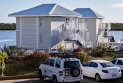 Все резорты располагаются на северном побережье островов. Их немного, но они есть. Автобус проезжает все, подбирая пассажиров для путешествия. Мы немного пофотографировали фасады отелей, не выходя из автобуса. Все отели отмечены 4 или 5 звездами. Понравился больше всего Melia Cayo Coco, там есть домики на сваях, стоящих в воде лагуны, почти что "бора-бора". Представляете, не выходя из дома, закинул удочку, поймал рыбку и на сковородку её. Или сам занырнул, вместо утреннего душа, поплавал, бодрость на весь день.