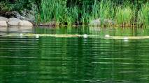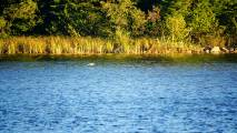 У противоположного берега активничает лебединая пара, можно зависнуть, любуясь на них. К тому же мы привезли из России бинокль моего деда Василия, который всегда у нас в машине, ну, и на дачу тоже берем с собой. Бинокль большой, в кожаном чехле, знатный одним словом. И лебеди через него совсем близко.