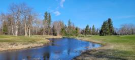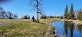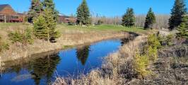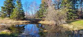 Ручеёк бежит изгибаясь и мы побрели по берегу за бобром. Видели издалека, как он нырнул под очередной мостик, перед этим опять шлёпнул хвостом. И потеряли из вида, а в конце ручья обнаружили его хатку. Вот, такое утреннее приключение.