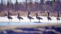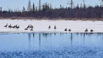 Мы каждую весну, наверно, лет десять подряд, едем на встречу с лебедиными парами. Лебеди, подснежники и журавли. Это уже весенняя традиция. И мы её трепетно предвкушаем февраль-март. Вот, и в этом году, проехались по кольцевой дороге провинциального парка Whiteshell, исполнив одно из заветных желаний весенних встреч. От курорта выехали на 44 (историческая Первая) - красивейшая дорога в скалах, озёрах, лесах и затем направо на кольцевую 307.