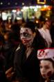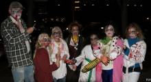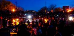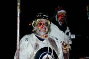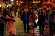 Зомби, зловещие снаружи, добрые внутри, оккупировали Форкс вчера вечером. На нескольких открытых площадках состоялись концерты. Самый впечатляющий на Oodena Celebration Circle, где обычно индейцы раскуривают трубку мира и ударяют в бубен. Толпы зомби на улице, дети, подростки, молодежь, взрослые, каждый театрально демонстрирует свой образ, помимо раскраса. Танцы с огнем впечатлили. Представьте, толпа людей вперемежку с костюмированными, заполнила склоны, идущие вниз к классическому индейскому кругу. Ночь, звезды, огни и в центре профессиональные танцы с огнем. Рядом под балдахином, на очередном круге Форкса тоже концерт в тесном кольце зрителей. Затем все дружно по Мейн и Бродвею направились к Золотому Мальчику. Планировалось, что будет достаточно пешеходных дорожек для марша, но, как показала реальность, тротуаров не хватило и полиции пришлось перекрыть Бродвей для гуляющих зомби.