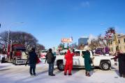 У Законодательного здания Манитобы протест продолжается. Атмосфера праздника. Люди приносят кофе протестующим, что-то еще, поддерживают как могут. Все проезжающие автомобили приветствуют сигналами, кричат слова благодарности. Мы были там минут 10-15, машины проезжали по Бродвею довольно плотно друг к другу и только из одной из них дама продемонстрировала недовольство происходящему. Люди дарили валентинки друг другу и пешеходам, мне тоже одна досталась. Перчатки оставила в машине, ко мне подошли, предложили варежки. Подобное единение людей в Виннипеге видела дважды: во время известия о продаже местной хоккейной команды НХЛ в 1996 году и в борьбе против наводнения 1997 года.