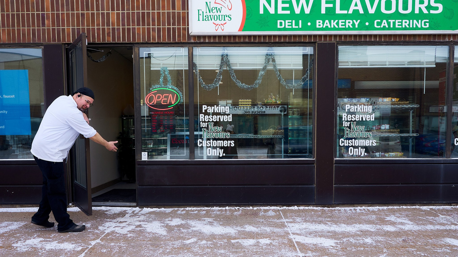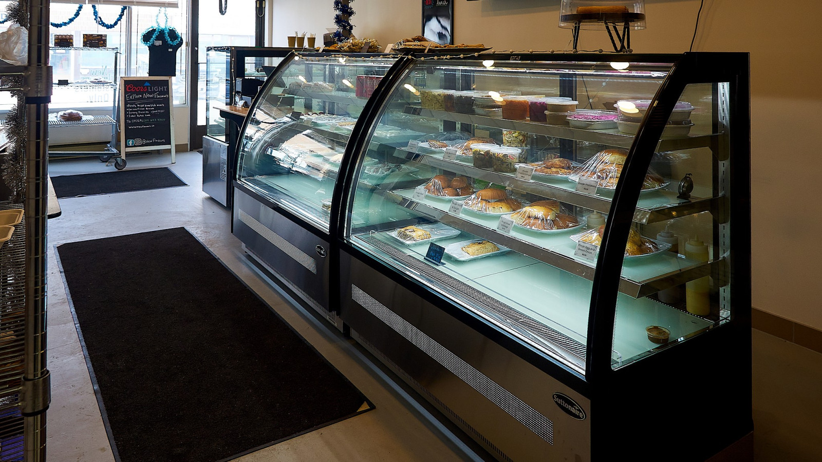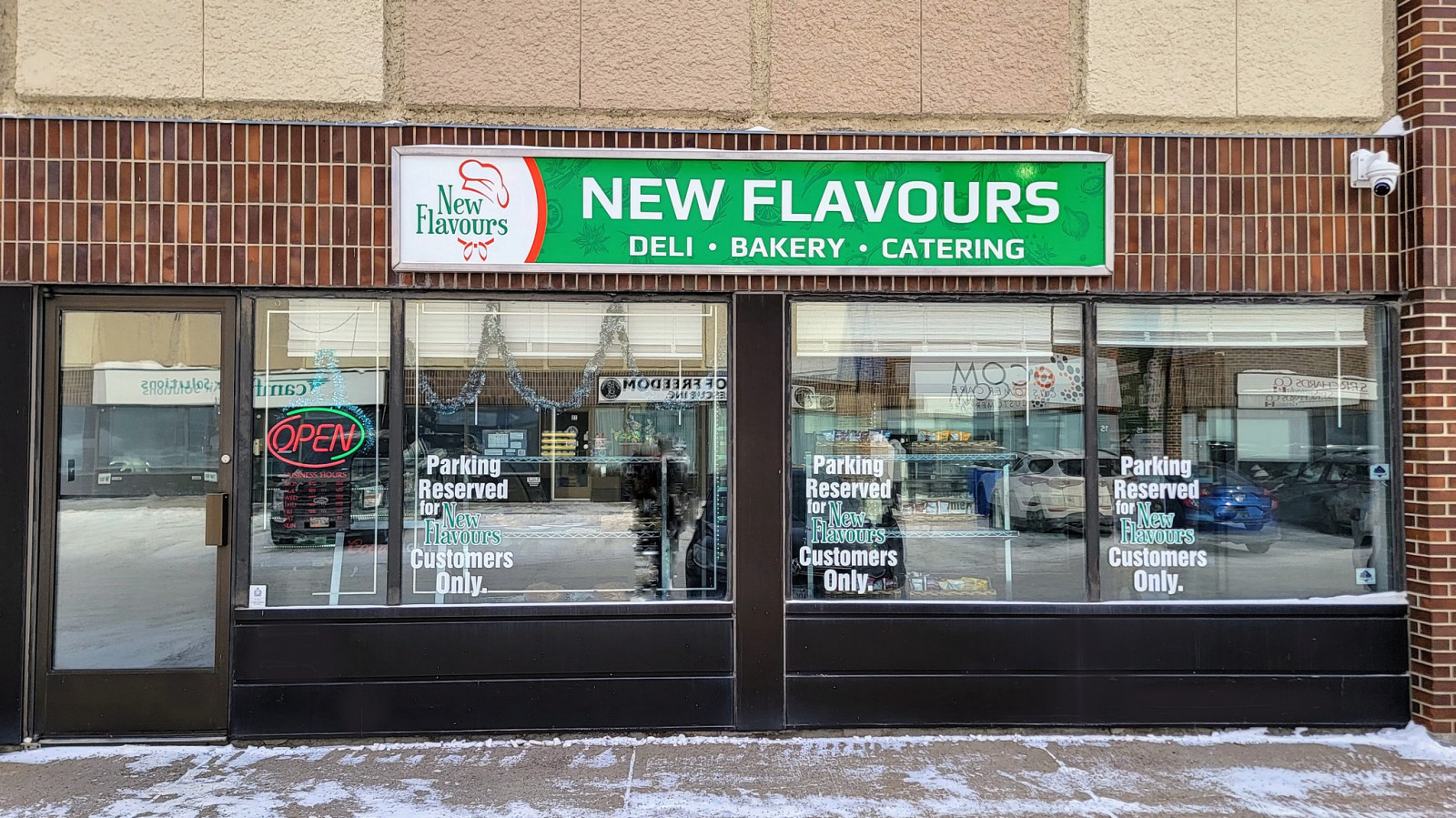 с названием New Flavours, который возглавляет Денис Берчанский. На вывеске магазина написано deli, сatering, bakery, что переводится на русский, как деликатесы, кейтеринг и пекарня. Кейтеринг довольно новое слово, плотно вошедшее в обиход, обозначает