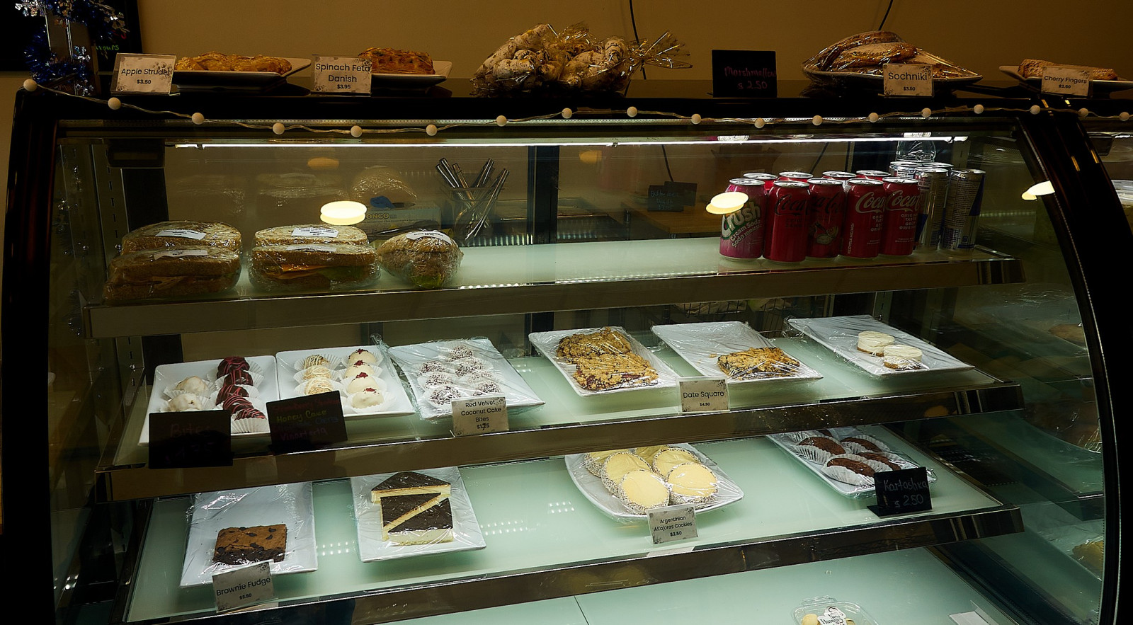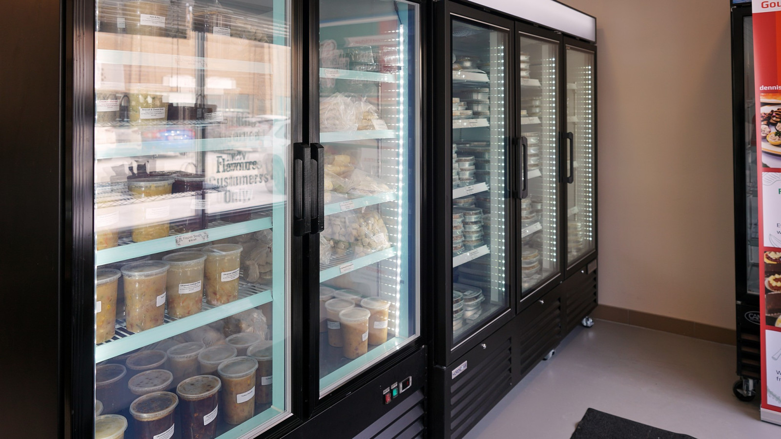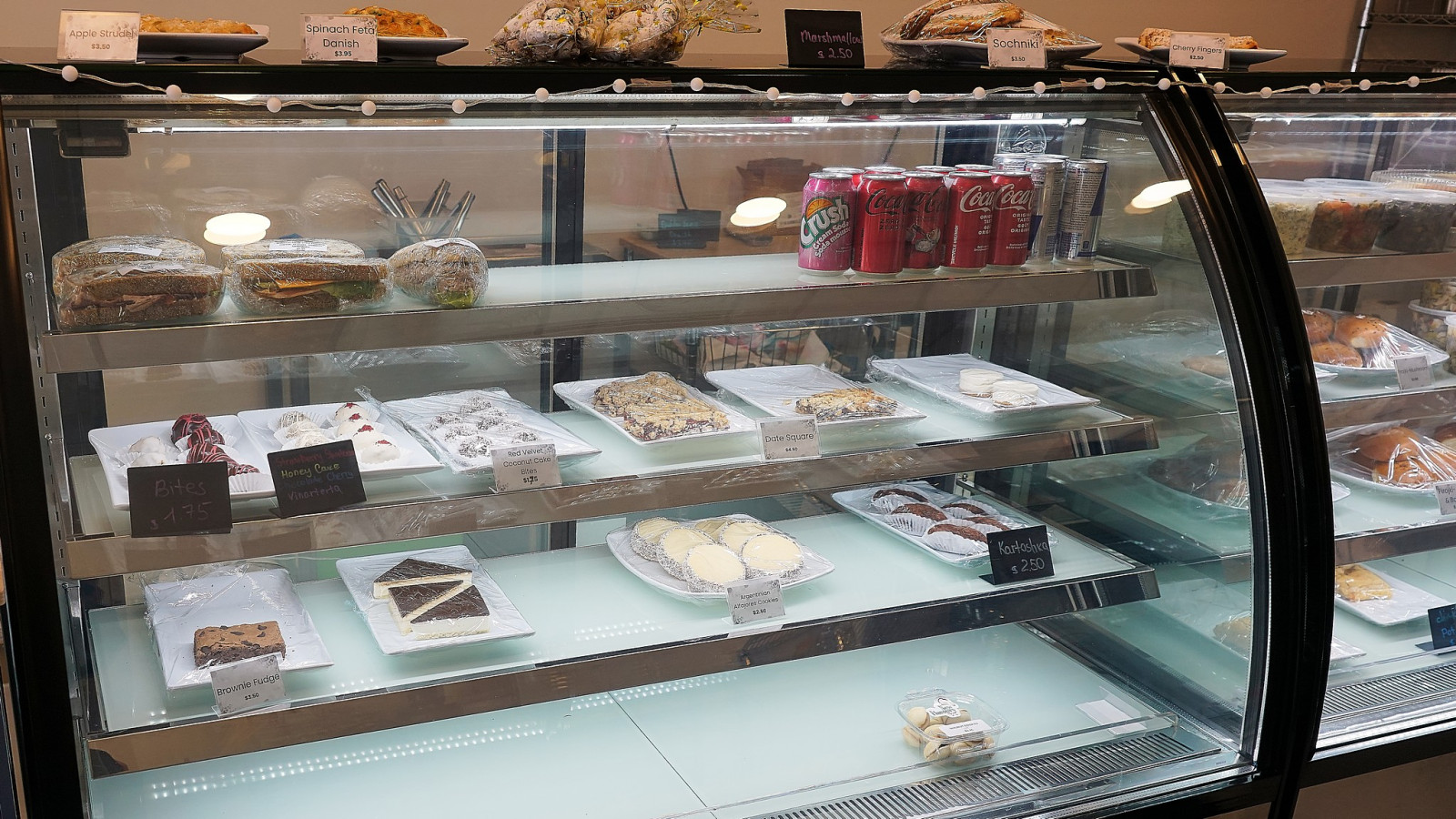 с названием New Flavours, который возглавляет Денис Берчанский. На вывеске магазина написано deli, сatering, bakery, что переводится на русский, как деликатесы, кейтеринг и пекарня. Кейтеринг довольно новое слово, плотно вошедшее в обиход, обозначает