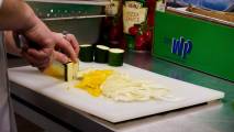 Сегодня Денис продемонстрировал метод фламирования. Кулинарный приём, при котором блюдо на финальной стадии приготовления поливают крепким алкоголем и поджигают. Спирт быстро выгорает, оставляя тонкий аромат и пикантный вкус. Эффектное шоу, овощи летают над сковородой в воздухе с огнём в крепких руках мастера.