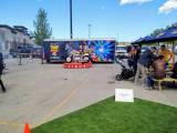 На парковке торгового центра Сант Витал огорожена небольшая территория, где персонажи “Toy Story 4” рады встретиться с вами. Несколько столов для поделок, разукрашек, игры, розыгрыши. Фотобудка со знаменитым мото, вам выдадут шлём для снимка.
