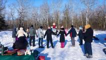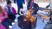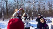 Прихожане Православного Свято-Троицкого Собора, что на Манитоба авеню, проводили Масленицу сегодня в провинциальном парке Птичьи Холмы. Была и удалая двойка лошадей с колокольчиками и санями, катались на них по лесу парка. Была и вкусная еда, горячий суп, деревенские колбаски с удовольствием подогревали на костре. "Блинцы, блинчики, блины, как колеса у весны"... Блины с разнообразной начинкой и без неё, горячий чай, кофе, сладкое.