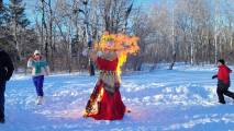 После этого чучело поджигают под веселые возгласы и песни. Когда же зима сгорит, завершает праздник финальная забава: молодежь прыгает через костер. Этим состязанием в ловкости и завершается праздник Масленицы.