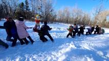 Четверг - "разгуляй". В этот день чтобы помочь солнцу прогнать зиму, люди устраивают по традиции катание на лошадях "по солнышку", то есть по часовой стрелке вокруг деревни. Главное для мужской половины в четверг - оборона или взятие снежного городка.