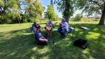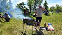 Организаторы заранее арендовали площадку и пригласили всех желающих. Получилось отлично, душевно. Звучали детские голоса, музыка, вкусный дымок от шашлыков уютно окутал всех присутствующих, зазывая к столу. Столы ломились от яств. Детей развлекала играми наш неутомимый массовик-затейник Любаша. Был и футбол, и бадминтон, множество игр на ловкость и логику. Гитары звучали весь день, аккомпанируя поющим. Всё так, как надо и даже лучше.