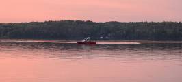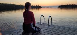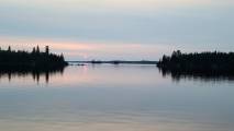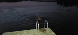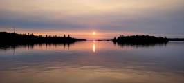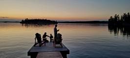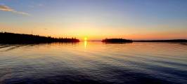 Закаты великолепны над озером, днем стоя на веранде, увидела хоровод новогодних ёлок. Сквозь иголки поблёскивает отражение солнца на воде, будто светящиеся гирлянды на ёлках, а на макушке одной из них горел огромный шар-солнце. Зрелище завораживающее, всё сверкает, переливается блёстками. Ночью другая картина, вокруг домика полно светлячков, ночное волшебство под звуки гагары и филина.