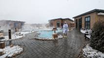 Новое спа больше похоже на Thermëa. Две сухие сауны, две с паром, несколько бассейнов на улице, комнаты отдыха, имеется ресторан и бар. Халаты и полотенца выдаются, шлепанцы нужно брать свои.