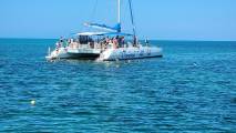 У меня день рождения. Муж удивляет утром, приглашая прокатиться на катамаране-яхте на остров Бланко ( в переводе с испанского Белый остров), что в 40-45 минутах от северного побережья нашего резорта. И вот, мы на палубе. Просторы океана, воды которого сияли от бирюзы до ультра-аквамарина, фантастические пейзажи, удовольствие от солнечного тепла, мягкого бриза, впечатление от яркого подводного мира (катамаран останавливается и предлагает туристам "посноркать" с масками), лангуст на обед под местную колоритную музыку и прогулка по необитаемому острову. Звучит неплохо, правда?
