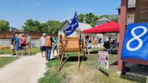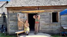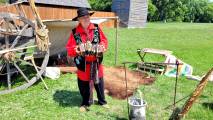 Перед фортом встречает гостей импровизированный лагерь первопроходца с настоящей телегой, свидетельницей дальних исторических путешествий, со шкурами животных и приветливым представителем французской диаспоры Виннипега, играющем на мини-грамошке и рассказывающим истории из прошлой жизни. Его родня приехала в наши места около 6 сотен лет назад, но он прекрасно (по его словам) говорит на родном языке (с нами общался на английском).