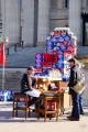 Трон из пустых бутылок вырос на ступеньках законодательного здания Манитобы в понедельник утром. Воздвиг его владелец гостиницы Angelo Mondragon из сельского городка Notre Dame de Lourdes, что на западе от Виннипега. Таким образом, Анжело привлекает внимание провинциального правительства к проблеме сельских гостиниц, появившихся после принятия ряда новых подзаконных актов. Анжело выступает от группы владельцев сельских гостиниц, не только от своего имени. Правительство НДП диктует размер профита, облагают налогами всё больше и больше. Многие владельцы борются за свой бизнес до последнего, тратят личные сбережения, здоровье, несколько случаев сердечных приступов, инфарктов и в итоге закрывают заведение, оставаясь ни с чем. Только две недели назад закрылись двери в гостинице поселка Голландия, что по соседству с Notre Dame.