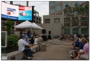 И небольшая "музыкальная пауза". Очень мне нравится наш Валютный квадрат, выехав из своего спального, вернее дачного района, попадаешь в другой мир: мощеные узенькие улочки, большие деревья, растущие из-под булыжника, старинные здания, столики ресторанчиков уже на улице, легкая музыка, пешеходы. Нравится. Звуки джаза напомнили, что сейчас проходит джазовый фестиваль в городе. Пошла на мелодию, концерт шел на улице, на пяточке Портач и Мейн. Музыканты играли, особенно понравился скрипач выдавал сногшибательные виртуозные партии на инстументе, котрабасист играл, пританцовывая, собрались зрители и даже были желающие танцевать. Улыбающие лица вокруг. Рядом продавались горячие бутерброды. Счасливчики замечательно провели свой обед.