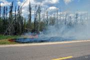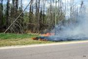 Вечером 13 мая мы проехали через настоящий лесной пожар. Лес пылал с обеих сторон трассы, огоньки пламени бежали по траве, по верхушкам деревьев. Дым стоял плотной стеной, включенные фары автомобиля не помогали. Правда, стена оказалась шириной в пару десятков метров и мы прошли через нее без приключений. Предлагаем фотографии, что успели сделать в чрезвычайной ситуации. Все происходило очень быстро, как бы все происходит с тобой и в то же время, ты оцениваешь обстановку, как посторонний наблюдатель. И вот, когда посторонний наблюдатель во мне заговорил громче, я набрала 911, а произошло это после пары минут, как мы проехали стену дыма. Мне в ответ, как всегда в Канаде - оставьте сообщение. Положила трубку. Через минут 5-6 из службы 911 перезвонили, спросили причину моего звонка. В общем, они уже в курсе о пожаре, пожарные мчатся на борьбу с огнем. Это случилось не доезжая до Пинавы несколько километров. Мы погуляли по городку, заехали на перекидной мостик и решили возвращаться домой без посещения старой плотины. Судьба распорядилась иначе. Полицейские перекрыли в связи с пожаром нужную нам дорогу и отправили в обьезд, который и был путем к разрушенной дамбе. Над пожаром кружились пожарные самолеты, а мы решили зарулить на плотину. Это были три последние часа из нашего воскресного путешествия 13 мая, которое началось в 9 утра и закончилось поздно вечером. Перенасыщенное путешествие событиями, возможно, о часах до пожара, я напишу позже. Ваша Винни.