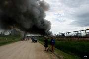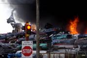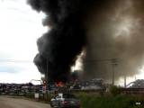 Густой черный дым застлал северо-восточный полнебосклон города. Мы в машину, держим курс по дыму. Опять горит свалка Трансконы. Полиции, пожарных не видно. Одновременно с нами подьехал автомобиль СитиТВ, паркуемся и фотографируем. Спецслужб не только не видно, но и не слышно. Вы когда-нибудь видели пожар свалки из старых автомобилей? Мы тоже наблюдаем впервые. Огонь сопровождается взрывами, видимо бензобаки разрываются. Удивила обстановка, люди спокойно подьезжали, фотографировали, комментировали, считали взрывы, типа: Good one. Не стихийное бедствие, а праздничный фейерверк. Больше всего удивило - работа экскаваторщика, достает куски из огня и отшвыривает подальше. Хоть и работает с подветренной стороны, но это же огонь, да еще с взрывами. Кому такой подвиг нужен, не знаю, как-то не похоже на Канаду. Мы уезжаем, навстречу мчится Глобал ТВ, следом СВС, СJOB/68, а Пресса Свободы так и не появилась. За прессой появилась полицейские и пожарки. Первые сразу поперекрывали все входы, выходы. Работа началась, мы спокойно уехали, оставив ситуацию под контролем.