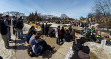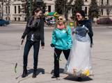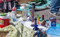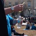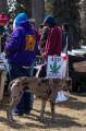 Полиция патрулировала мероприятие на машинах, на своих двоих и на крыше стояли снайперы, а может и фотоснайперы, рядом с золотым мальчиком. Всё выглядело мирно, нам с удовольствием позировали. Бизнесы подсуетились, предлагали товар в тему дня. Основной возраст протестантов составляли почти подростки, совсем юные молодые люди, изредка попадались и седовласые. Молодежь тут же собирала мусор. Понравилась собакевич, балдеющий на солнышке или от дымка, а может и от всего на свете.